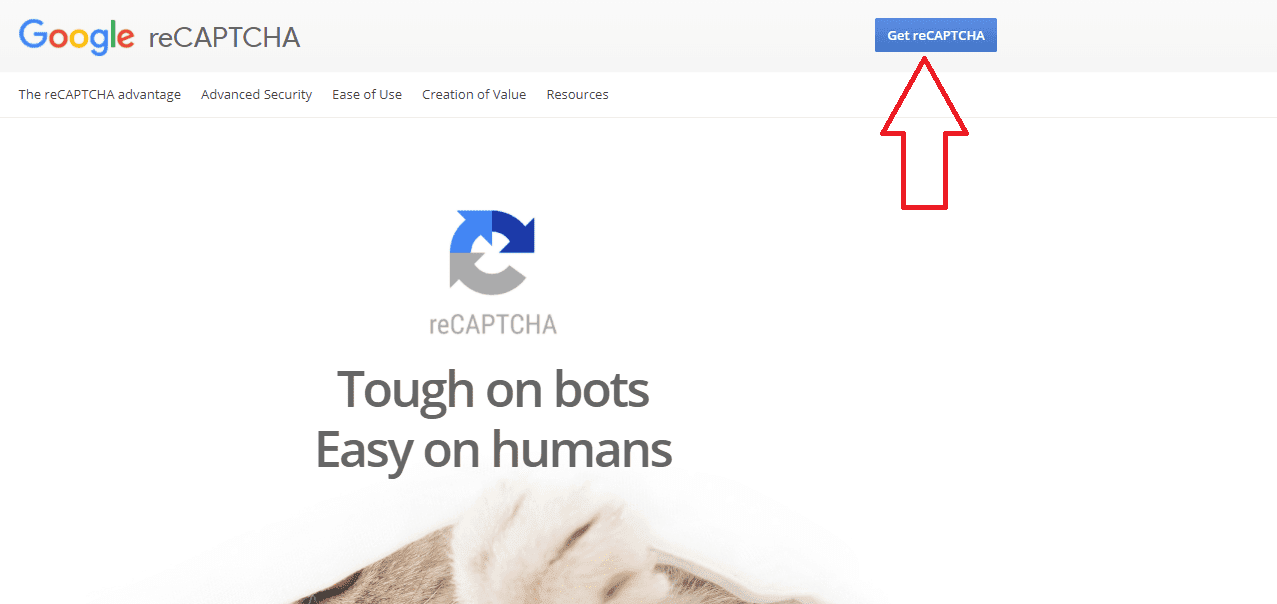 Bước 1: truy cập Đăng ký google recaptcha ấn Get reCaptcha để bắt đầu đăng ký.