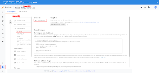 – Mã ID theo dõi lấy trong phần admin của Google analytics như hình dưới đây