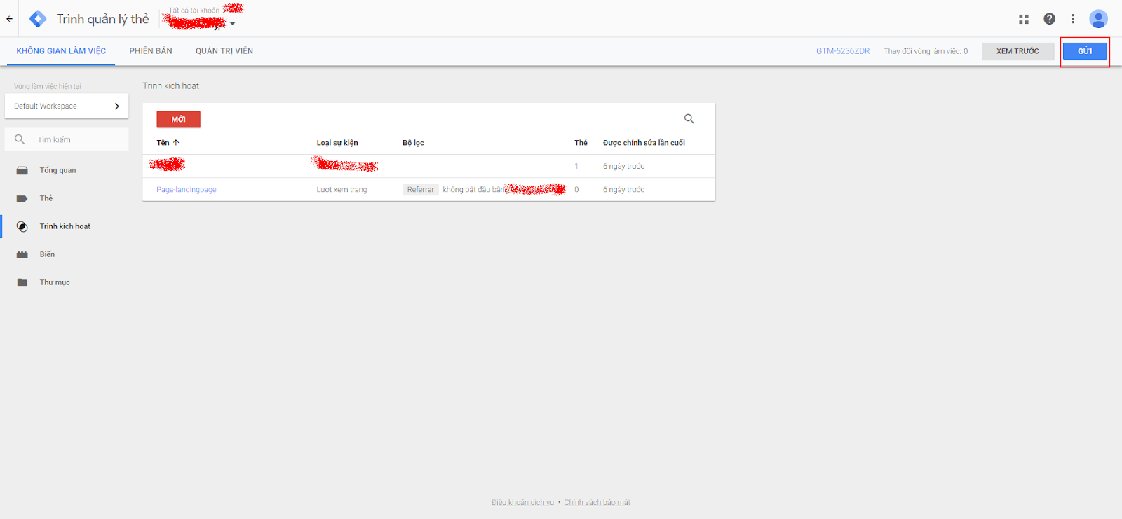 Thoát ra ngoài giao diện Triggers (Trình kích hoạt) nhấn Gửi => Không cần phải điền thông tin gì cứ như vậy nhấn Xuất Bản (đây là bước mà mình đọc trên các bài hướng dẫn khác không nói dẫn tới mình không thể thực hiện thành công) xem thêm hình bên dưới